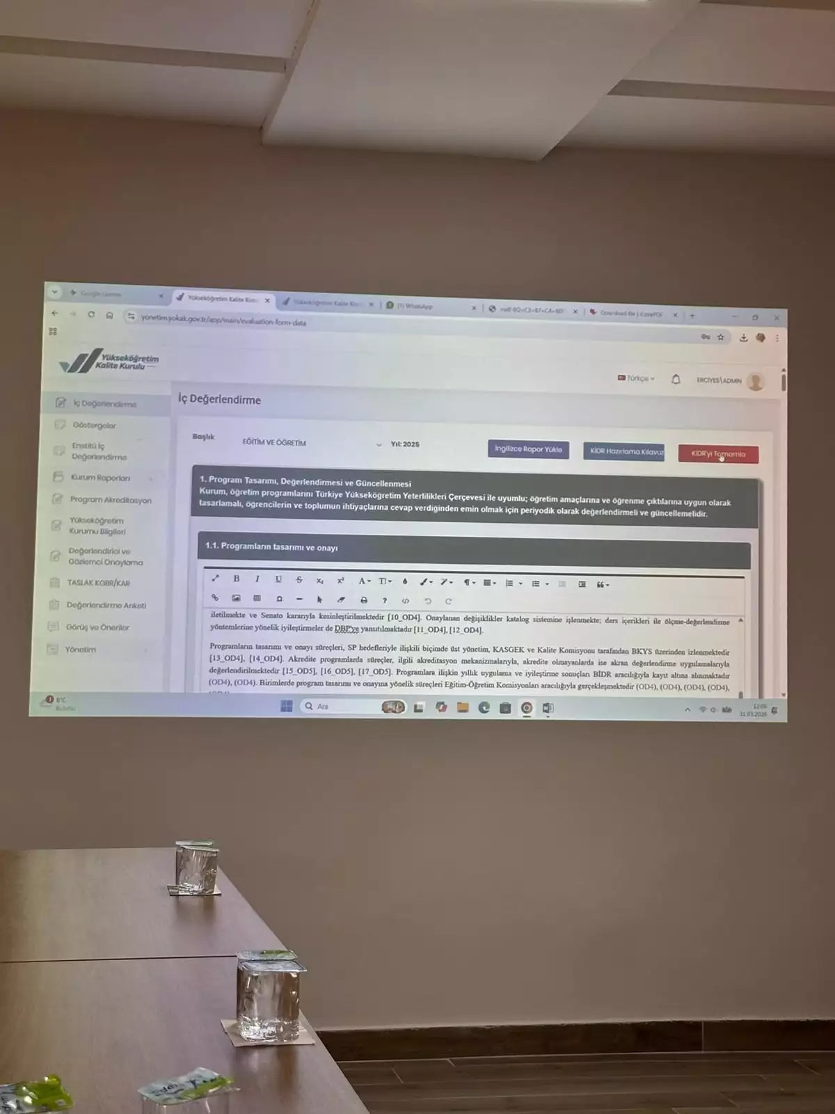 Üniversitemizin kalite güvencesi çalışmaları kapsamında hazırlanan Kurum İç Değerlendirme Raporu tamamlanmış olup, ilgili rapor Yükseköğretim Kalite Kurulu (YÖKAK) Sistemine yüklenmiştir.