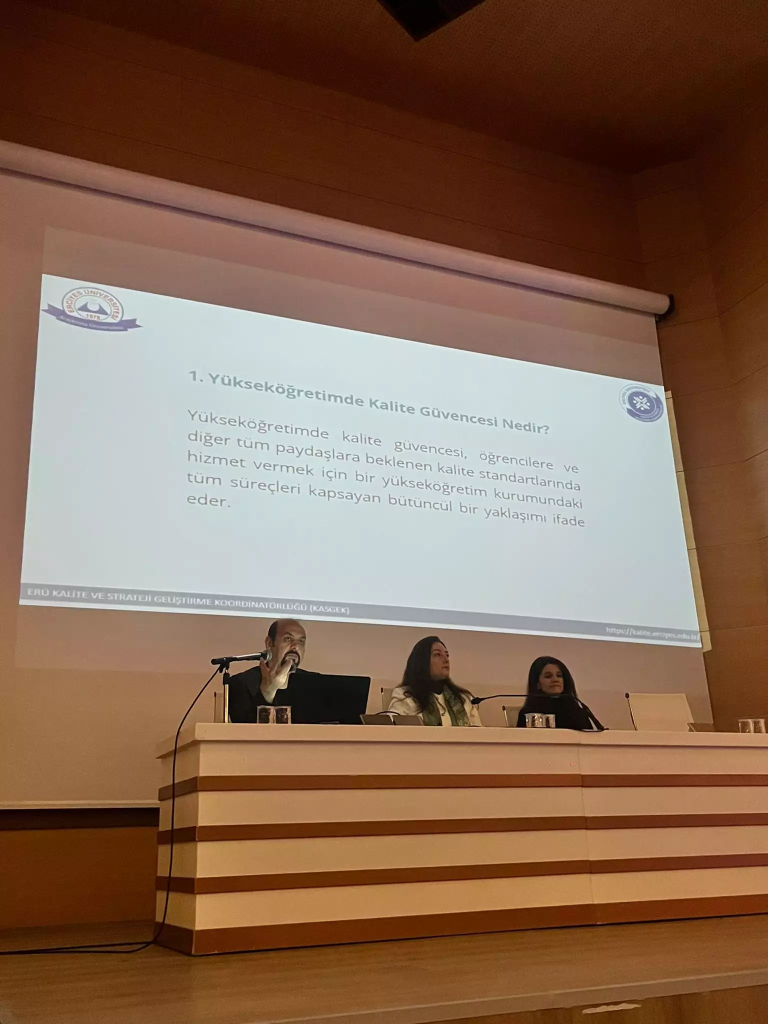 ERÜ Kalite ve Strateji Koordinatörlüğümüz tarafından *Öğrenci Kalite Topluluğu Toplantısı* Rektörlük Konferans Salonunda düzenlendi. Toplantının açılış konuşmasını yapan Kalite Koordinatörümüz Prof. Dr. Hale KOZLU, Yükseköğretimde kalite süreçleri, kalite kültürünün yaygınlaştırılması ve öğrencilerle birlikte yürütülecek kalite çalışmaları hakkında bilgi verdi.