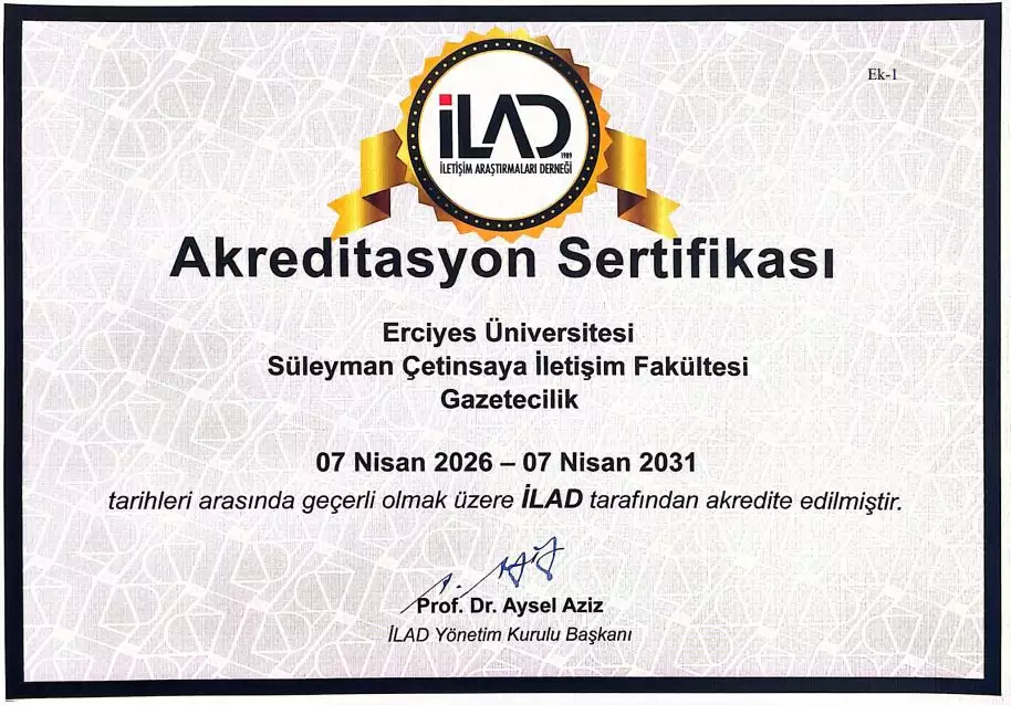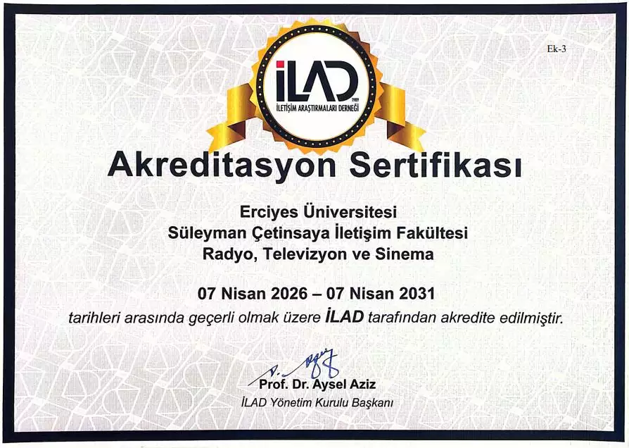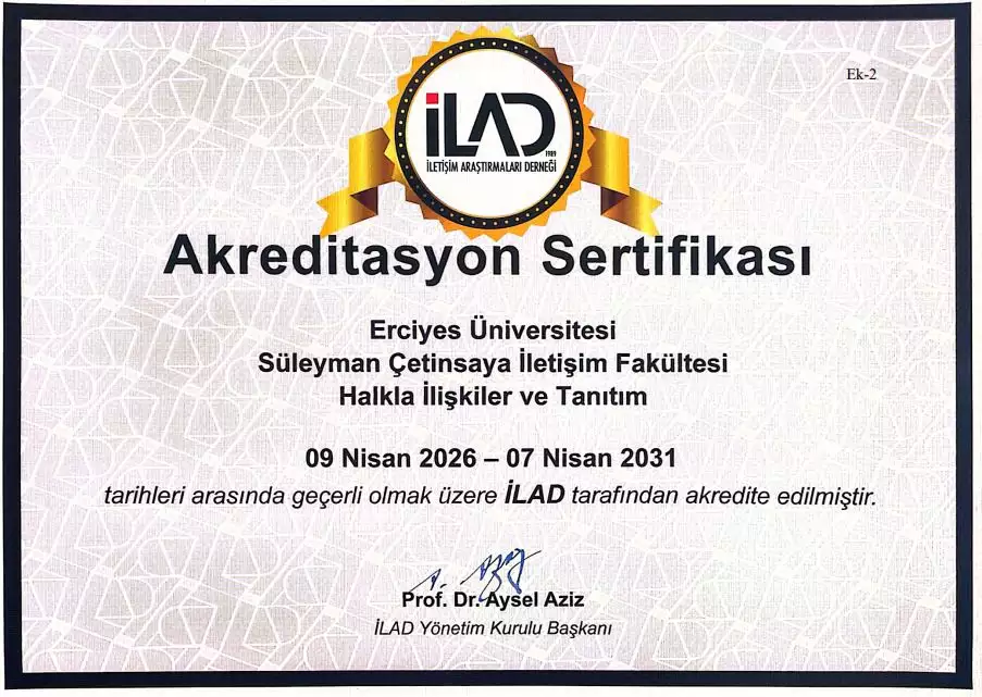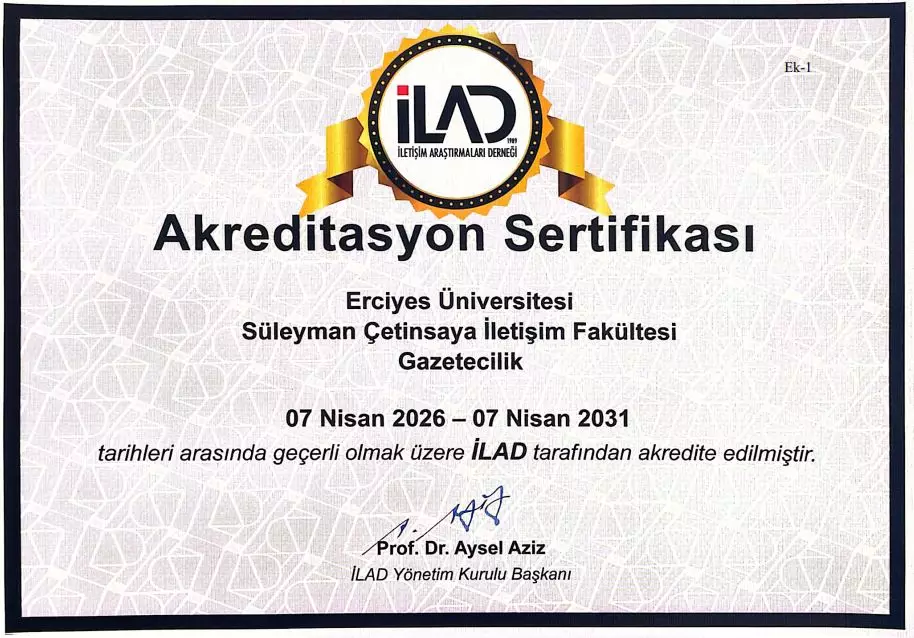 İletişim Fakültesi Gazetecilik, Halkla İlişkiler ve Tanıtım ile Radyo, Televizyon ve Sinema Bölümlerinin birinci örgün öğretim programları, İletişim Eğitimi Değerlendirme Akreditasyon Kurulu (İLEDAK) tarafından 07.04.2026 - 07.04.2031 tarihleri arasında beş (5) yıl geçerli olmak üzere akredite edilmiştir.